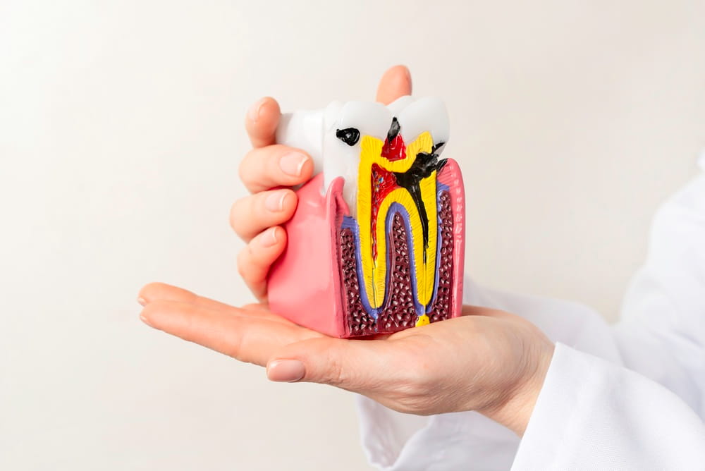 Lorsque la carie atteint la pulpe, le tissu vivant situé au centre de la dent, une pulpite peut se développer. Cette inflammation s’accompagne généralement de douleurs plus intenses, parfois spontanées ou déclenchées par le chaud, le froid ou la mastication.